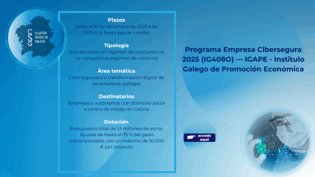 - IG408O – Empresa Cibersegura – Ayudas para mejorar la preparación digital frente a las amenazas cibernéticas en las empresas gallegas (2025) . Fin del plazo: 10/12/2025