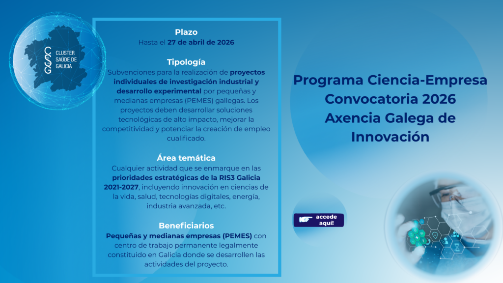 - Programa Ciencia-Empresa – Axencia Galega de Innovación – Fin del plazo: 27/04/2026